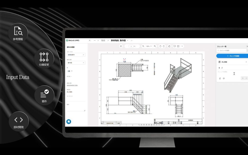 木村様: これまでは、次の工程に情報を渡すたびに「翻訳作業」や「確認作業」が必要でしたBALLASの基盤上では、関係者が同じデータを参照し、一つの円の中で同期します。