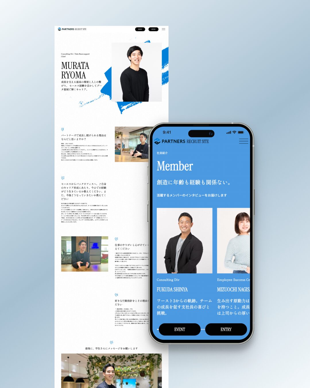 さらに採用イベントでは、採用動画の放映により「会場の雰囲気をすべてパートナーズに持っていかれた」とエージェントの方から高評価を獲得したことや、社内からも「より洗練された採用サイトになった」との声が寄せられました。